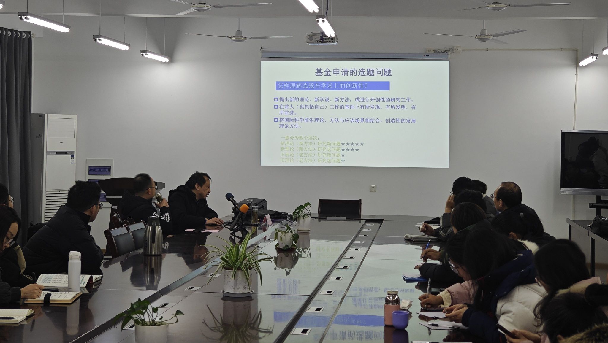 何恩节代表学院对罗永龙教授的到来表示衷心的感谢,并向大家简要介绍其学术成果、丰富经验等。会上,罗永龙教授就近年来国家自然科学基金的申报获批情况进行了说明,并结合自身经验,详细介绍了撰写过程中的注意事项。从项目选题、项目摘要、立项背景、研究目标、研究内容、创新点等方面,全面深入阐述了国家自然科学基金项目的申请要点。与会老师无不感觉受益匪浅。