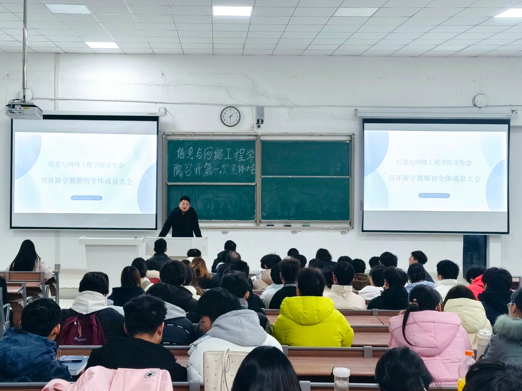为明确新学期工作目标,增强学生干部的责任意识。2月27日,信息与网络工程学院学生会在致知楼C111召开新学期期初全体成员大会,学生会指导老师崔北坤、专职辅导员李倩楠,学生会全体成员参加本次会议,会议由崔北坤主持。
