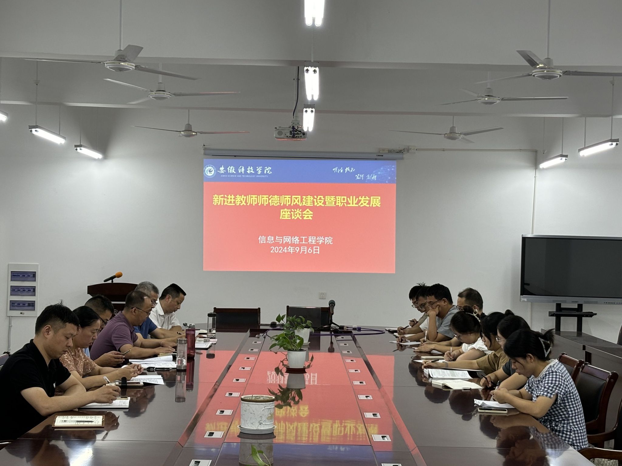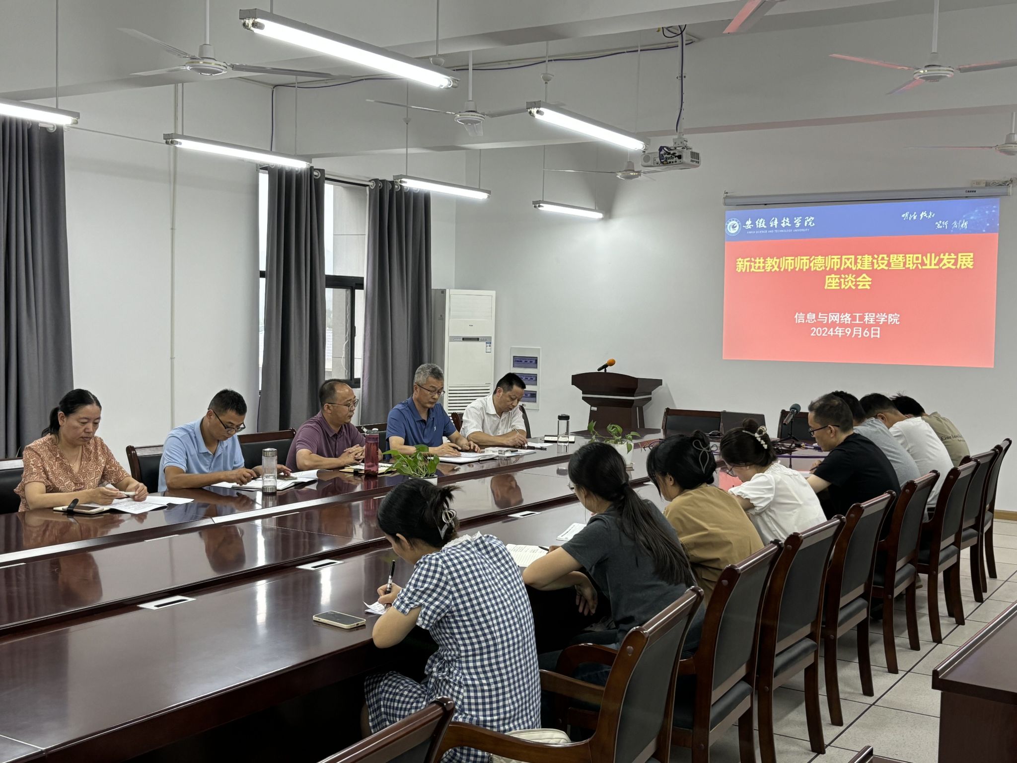 为深入学习贯彻习近平新时代中国特色社会主义思想,进一步加强青年教师队伍建设,9月6日下午,信息与网络工程学院在尚行楼B418会议室召开新进教师师德师风建设暨职业发展座谈会,学院党政领导及近两年新进青年教师参加了会议,会议由学院党委书记王振其主持。
