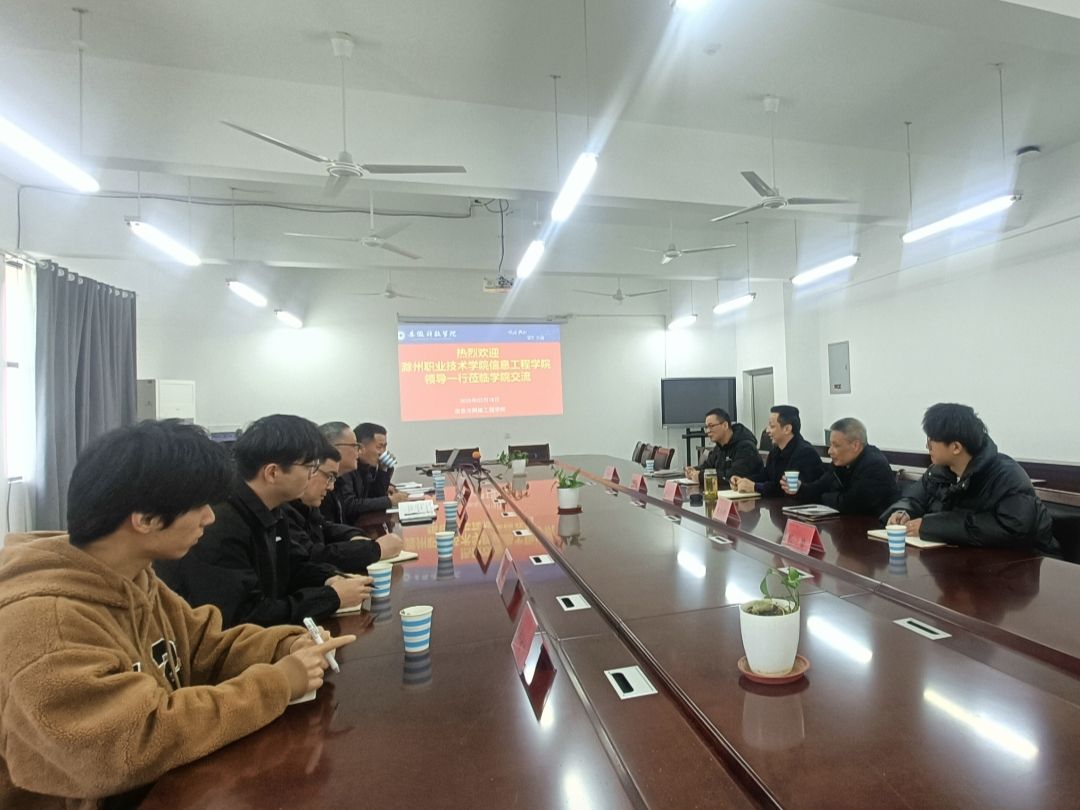 陈开兵分享了滁州职业技术学院信息工程学院在专业特色打造、实践教学体系构建等方面的经验,双方就计算机科学与技术(专升本)专业的人才培养方案课程体系优化、实习实训基地建设、考研、学科竞赛、毕业设计、学生会建设等工作展开热烈讨论。
