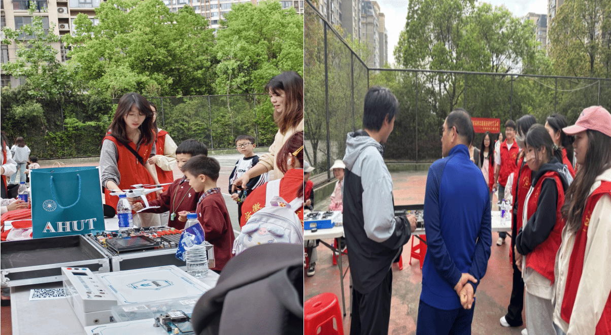 活动现场,学生党员与志愿者分工明确、各司其职,围绕“关爱老年群体”、“科普启迪童心”两大主题开展特色服务。在网络安全与防诈骗宣传专区,学生党员组成宣讲组,结合真实案例,用通俗易懂的语言讲解网络诈骗防范与个人信息保护知识,手把手指导老年人使用智能手机,并帮助其下载反诈APP,以实际行动助力老年人跨越“数字鸿沟”,展现了学生党员的责任与担当。在儿童科普体验区,学生党员带领志愿者通过物联网实验箱演示、无人机静态展示等形式,以趣味化方式为孩子们讲解科技知识与技术原理,在他们心中播下科学启蒙的种子,以专业所学服务社区群众。