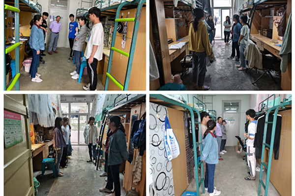 为全面排查学生寝室安全隐患及外宿情况,进一步提高学生安全意识,5月12日下午,资源与环境学院党政办主任吴国良,团委副书记杨小晗和新生辅导员王丽萍深入学生寝室开展安全卫生及外宿检查。