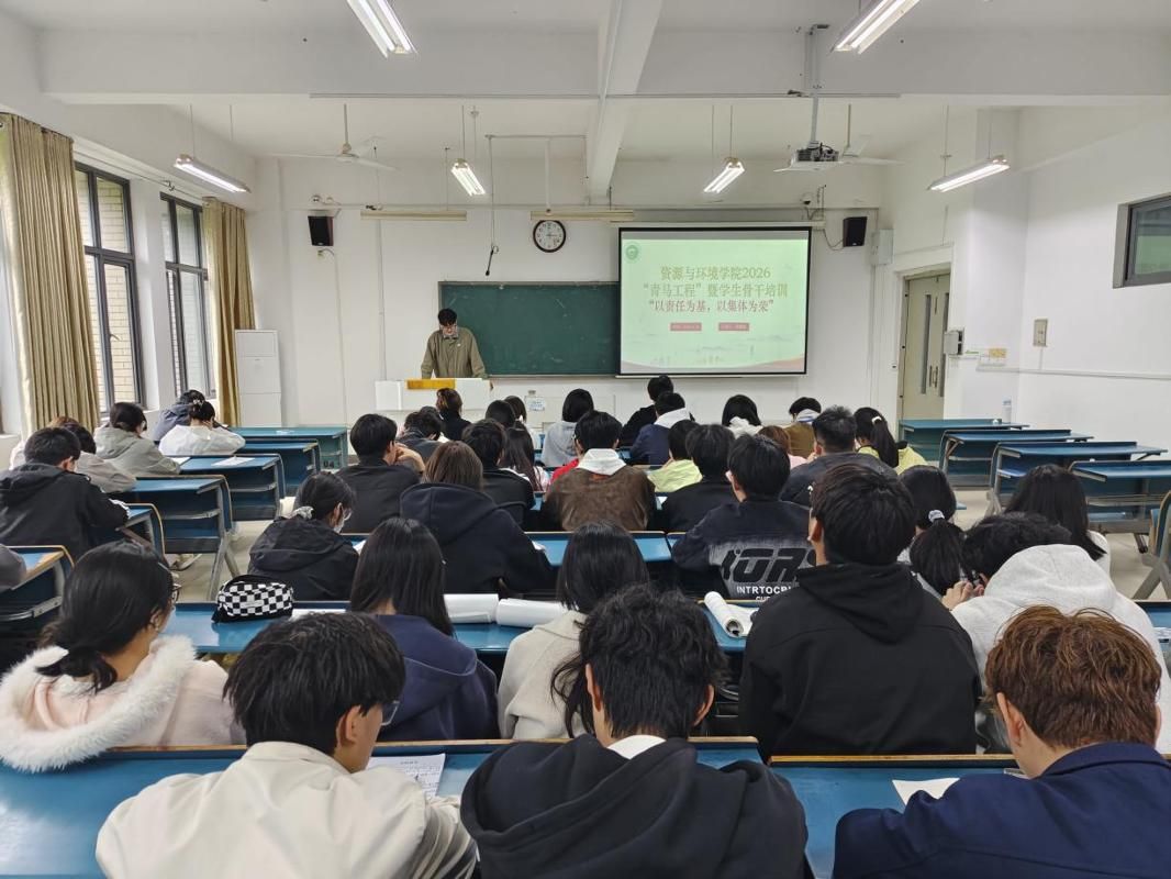 为进一步强化学院学生骨干队伍建设,4月22日下午,资源与环境学院在新知楼A201开展“青马工程”暨学生骨干培训。活动由学院辅导员、学生支部书记孙正浩主持,2024级、2025级全体学生干部参加。