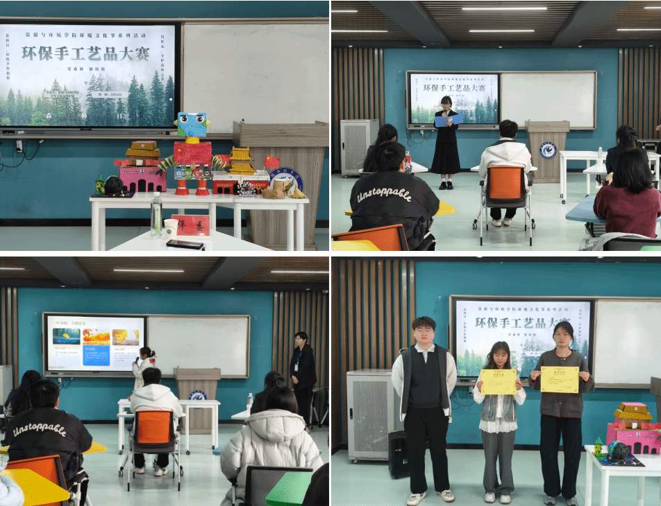 为了倡导废物利用、变废为宝的绿色理念,引导学生珍惜资源、减少浪费。3月22日,资源与环境学院于求知楼B309举办“世界森林日”环保手工艺品大赛。资源与环境学院学生会主席柴俊昌、动物科学学院学生会主席王敏、农学院学生会主席张梦冉受邀担任本次比赛评委。