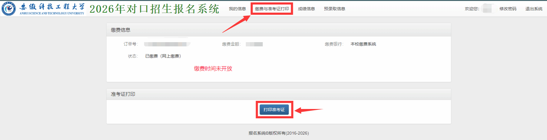 各位对口考生:根据学校2026年对口考试招生职业技能考试安排,请于3月26日15:00后,按照以下操作流程打印考生准考证和专业技能测试考生须知,下载后请仔细查阅,并按照相关要求,参加考试。如有疑问,请咨询安徽科技工程大学招生办公室 0550-6732041,0552-3197041。